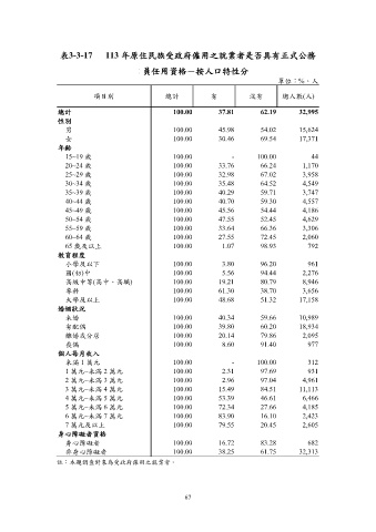 表3-3-17 113 年原住民族受政府僱用之就業者是否具有正式公務