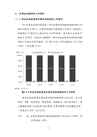113 年原住民族就業者有 1.45%從事政府所提供的臨時性工作,