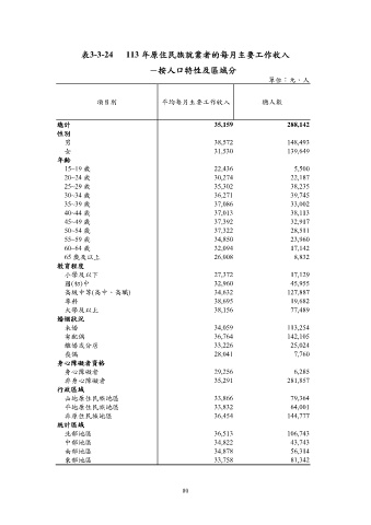 表3-3-24 113 年原住民族就業者的每月主要工作收入