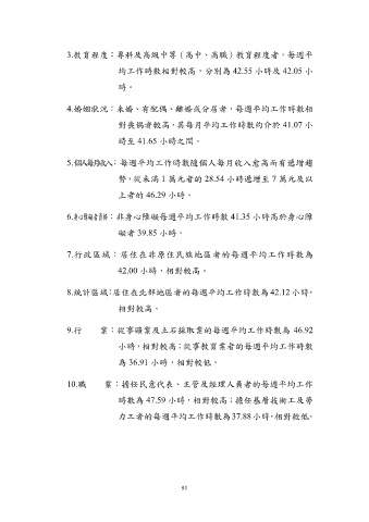 10.職 業:擔任民意代表、主管及經理人員者的每週平均工作