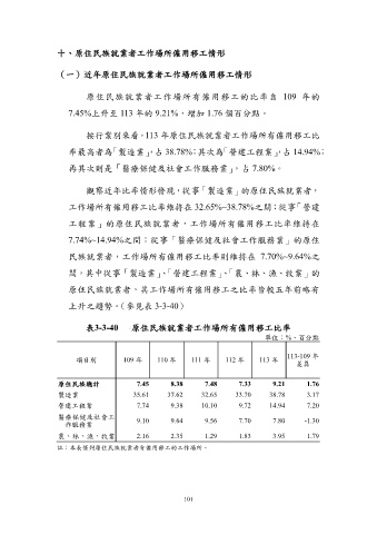 表3-3-40 原住民族就業者工作場所有僱用移工比率