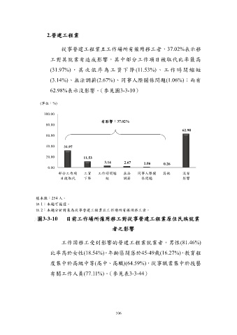 從事營建工程業且工作場所有僱用移工者,37.02%表示移
