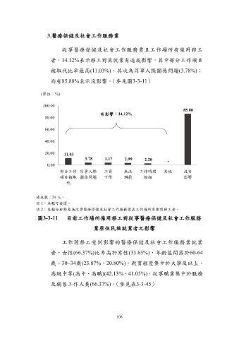 圖3-3-11 目前工作場所僱用移工對從事醫療保健及社會工作服務
