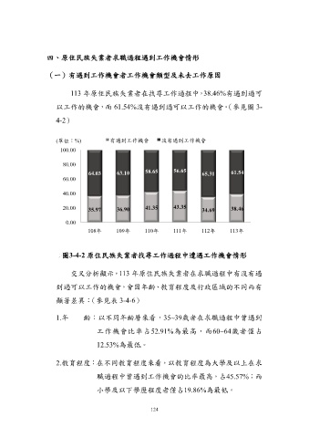 113 年原住民族失業者在找尋工作過程中,38.46%有遇到過可