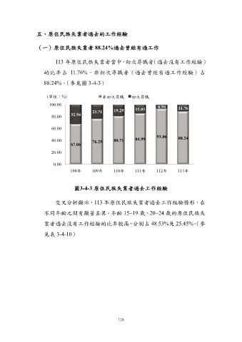 113 年原住民族失業者當中,初次尋職者(過去沒有工作經驗)