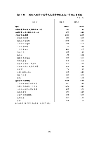 表3-4-11 原住民族非初次尋職失業者離開上次工作的主要原因