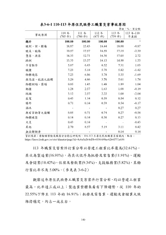 表3-6-1 110-113 年原住民族勞工職業災害事故原因