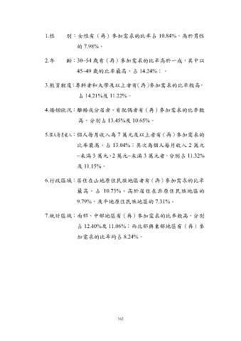 1.性 別:女性有(再)參加需求的比率占 10.84%,高於男性
