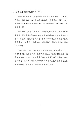 失業人口數為 5,241 人,女性原住民族平均失業率為 3.62%。與全