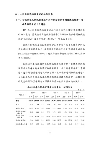 113 年女性原住民族就業者工作身分以受公司/企業僱用比率