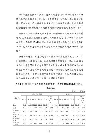 表4-1-9 109-113 年女性原住民族就業者、全體女性就業者工作身分