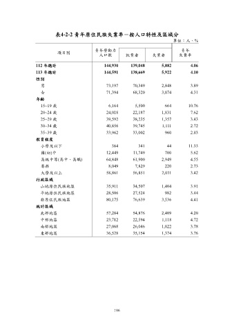 表4-2-2 青年原住民族失業率-按人口特性及區域分