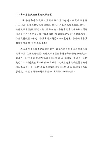 113 年青年原住民族就業者從事行業以營建工程業比率最高