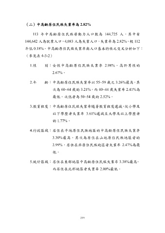 年低 0.18%。中高齡原住民族失業率與人口基本特性之交叉分析如下: