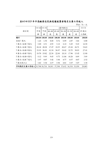 表4-3-8 113 年中高齡原住民族受僱就業者每月主要工作收入