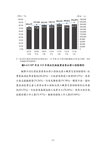 圖4-4-2 107 年至 113 年原住民族就業者參加勞工保險情形
