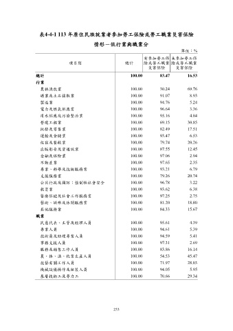 表4-4-1 113 年原住民族就業者參加勞工保險或勞工職業災害保險