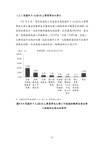 未參加原因以「沒有多餘的錢繳交保險費」比率最高(39.62%),其次