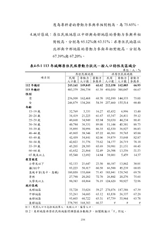 表4-5-1 113 年城鄉原住民族勞動力狀況-按人口特性及區域分