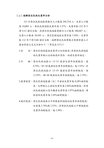 3.教育程度: 原住民族地區國(初)中者的失業率為 4.24%相對較