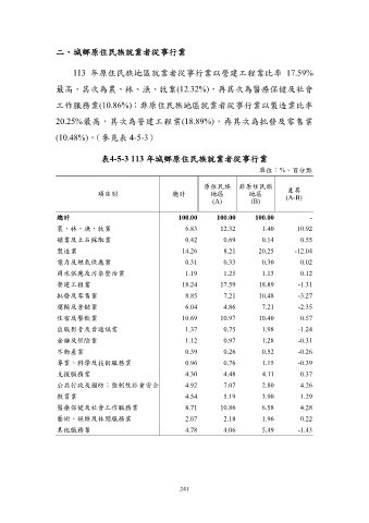 表4-5-3 113 年城鄉原住民族就業者從事行業