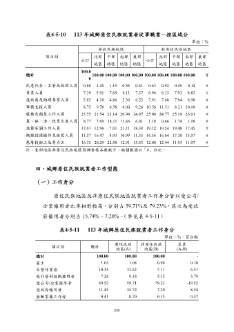 表4-5-11 113 年城鄉原住民族就業者工作身分