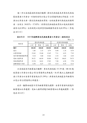 表4-5-12 113 年城鄉原住民族就業者工作身分-按性別分