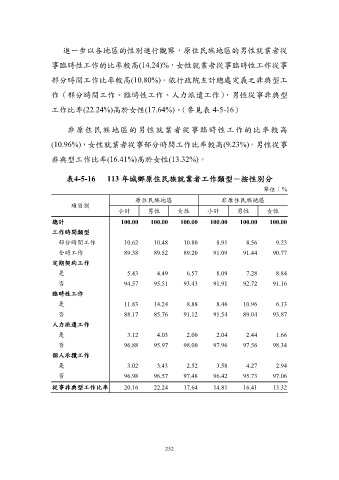 表4-5-16 113 年城鄉原住民族就業者工作類型-按性別分