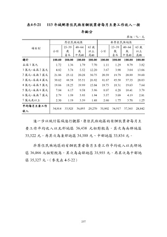 表4-5-21 113 年城鄉原住民族有酬就業者每月主要工作收入-按