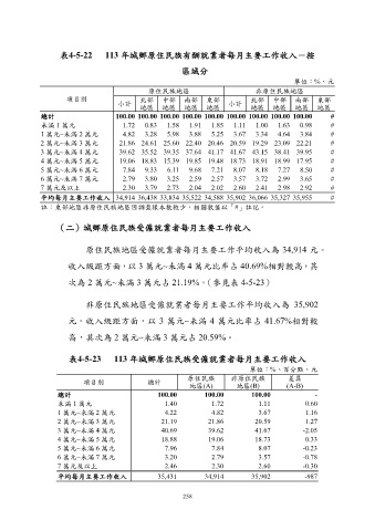 表4-5-22 113 年城鄉原住民族有酬就業者每月主要工作收入-按