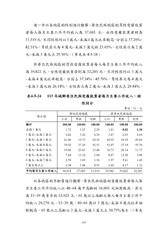 表4-5-24 113 年城鄉原住民族受僱就業者每月主要工作收入-按