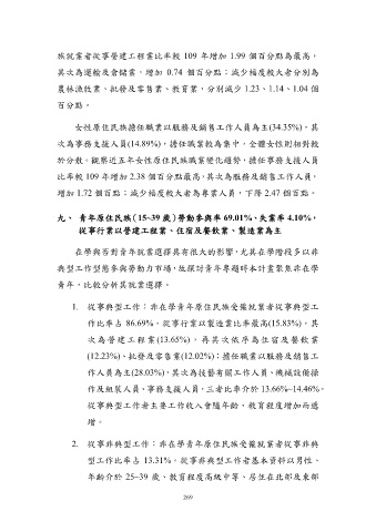 九、 青年原住民族(15~39 歲)勞動參與率 69.01%、失業率 4.10%,