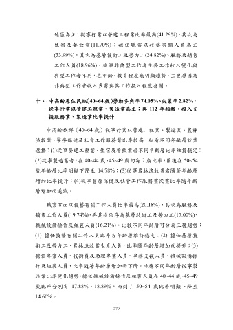 中高齡族群(40~64 歲)從事行業以營建工程業、製造業、農林