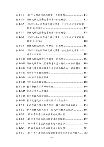 表 4-1-3 113 年女性原住民族就業、失業情形.............................. 173