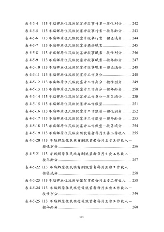 表 4-5-19 113 年城鄉原住民族有酬就業者每月主要工作收入 ..... 255