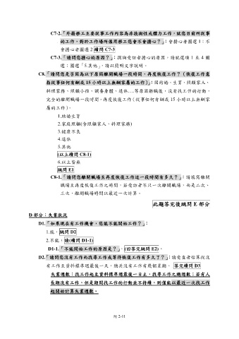 D1-1.「不能開始工作的原因是?」,(回答完跳問 E2)。