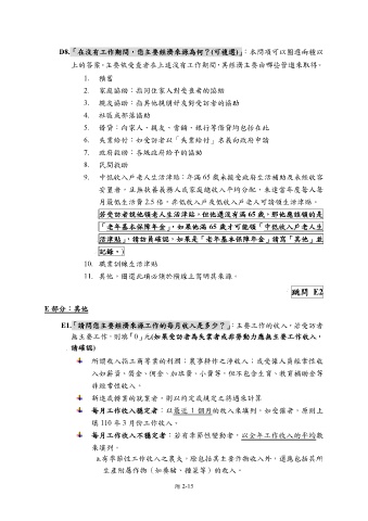 上的答案。主要依受查者在上述沒有工作期間,其經濟主要由哪些管道來取得。