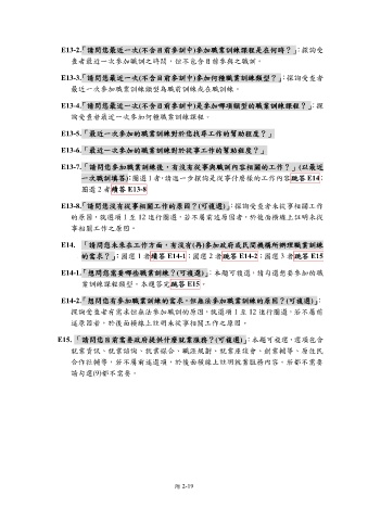 一次職訓填答):圈選 1 者,請進一步探詢是從事什麼樣的工作內容跳答 E14;