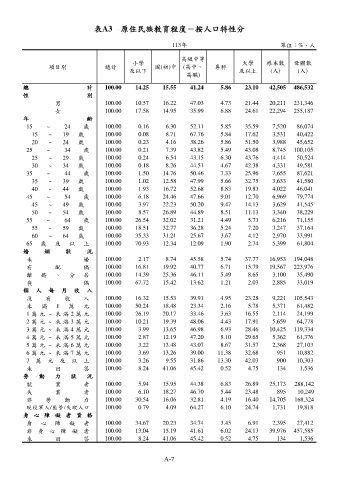 表A3 原住民族教育程度-按人口特性分