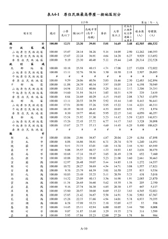平 地 原 住 民 族 地 區 100.00 15.67 22.24 36.91 4.64 14.28 6.27 9,929 113,652