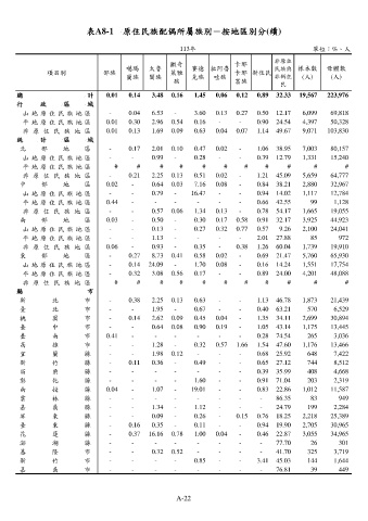 表A8-1 原住民族配偶所屬族別-按地區別分(續)
