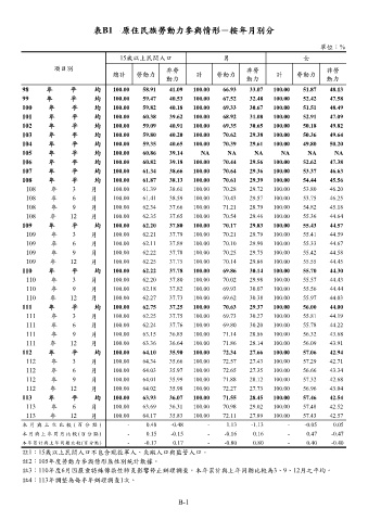 表B1 原住民族勞動力參與情形-按年月別分