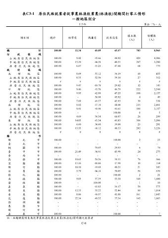 山 地 原 住 民 族 地 區 100.00 9.41 48.98 41.61 188 2,157