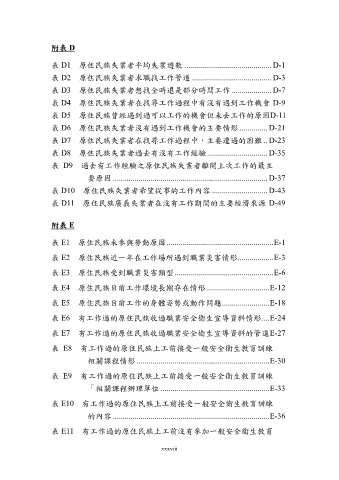 表 D8 原住民族失業者過去有沒有工作經驗 .............................. D-35