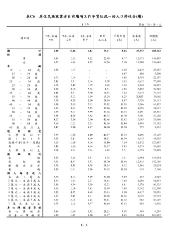 表C6 原住民族就業者目前場所工作年資狀況-按人口特性分(續)