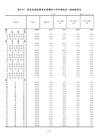 表C6-1 原住民族就業者目前場所工作年資狀況-按地區別分