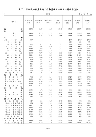 表C7 原住民族就業者總工作年資狀況-按人口特性分(續)