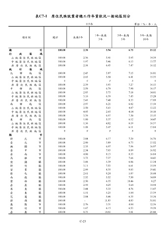 表C7-1 原住民族就業者總工作年資狀況-按地區別分