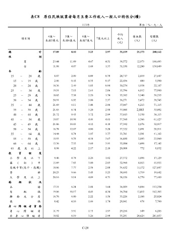 表C8 原住民族就業者每月主要工作收入-按人口特性分(續)