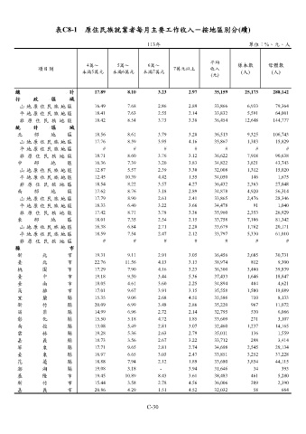 表C8-1 原住民族就業者每月主要工作收入-按地區別分(續)